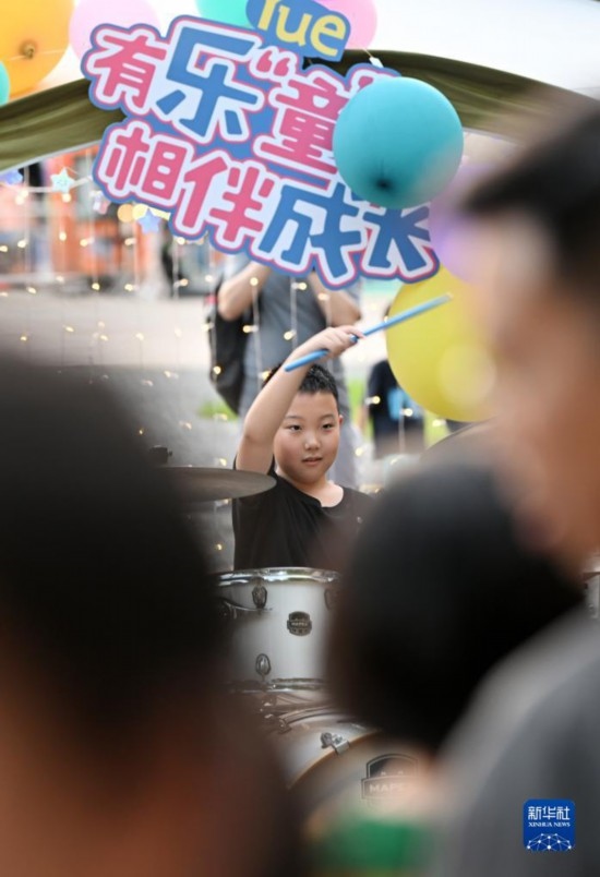 7月8日,小朋友在帳篷音樂(lè)會(huì)上表演節(jié)目。