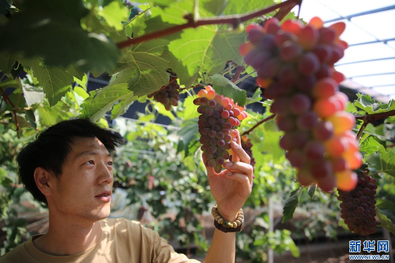 7月6日,阿勒泰農(nóng)牧業(yè)公司工作人員摘下成熟的葡萄。新華網(wǎng) 楊騰格爾 攝