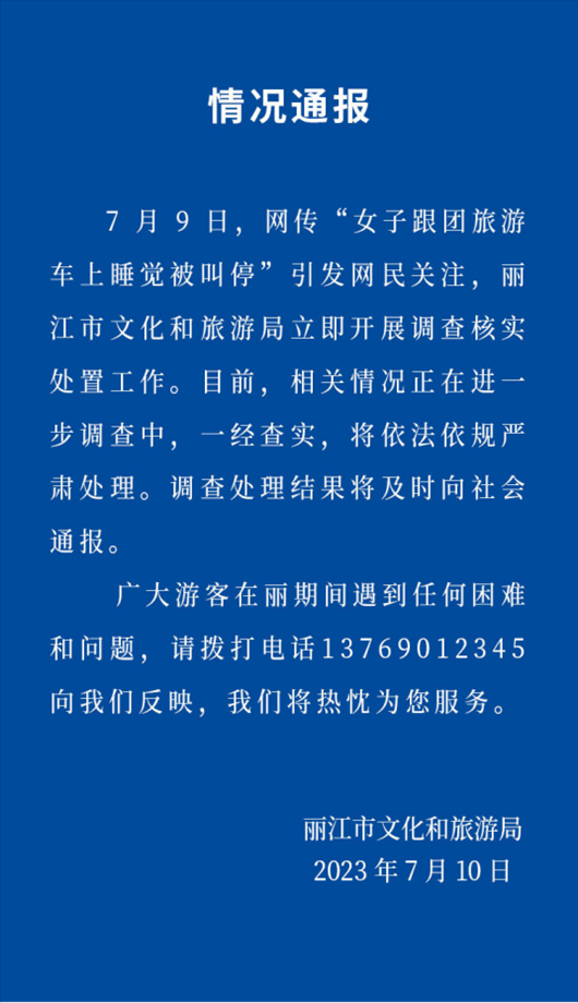 ·女子跟團(tuán)游車(chē)上睡覺(jué)被叫醒不許睡?麗江文旅局:立即調(diào)查。