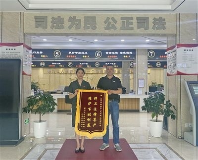 柯城區(qū)人民法院執(zhí)行干警收到當(dāng)事人送來的錦旗。 盧夢瑩 攝