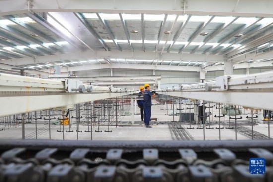 工人在位于唐山市灤南縣的唐山華纖科技有限公司生產(chǎn)車間內(nèi)工作(2022年6月27日攝)。新華社發(fā)(張永新 攝)