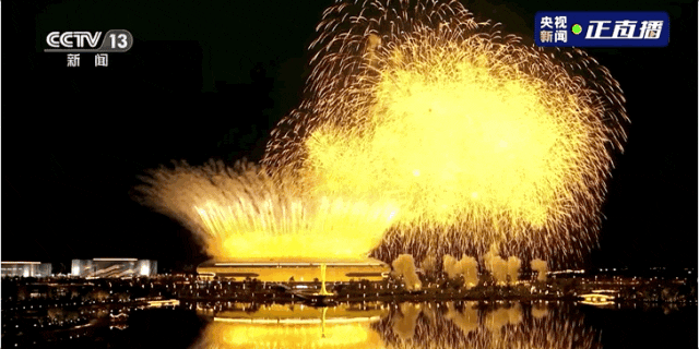 從地面到空中綻放形為“12”的數(shù)字焰火