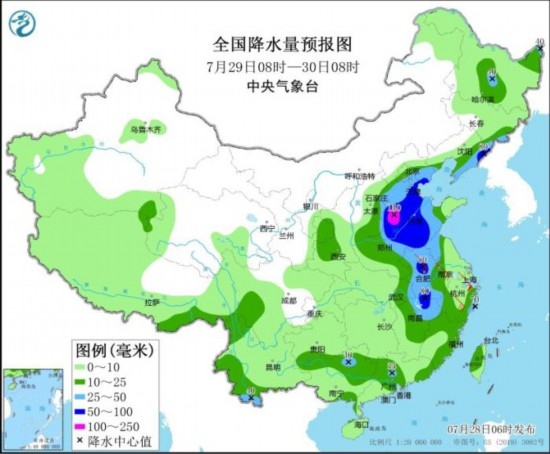 全國降水量預(yù)報(bào)圖(7月29日08時(shí)-30日08時(shí))