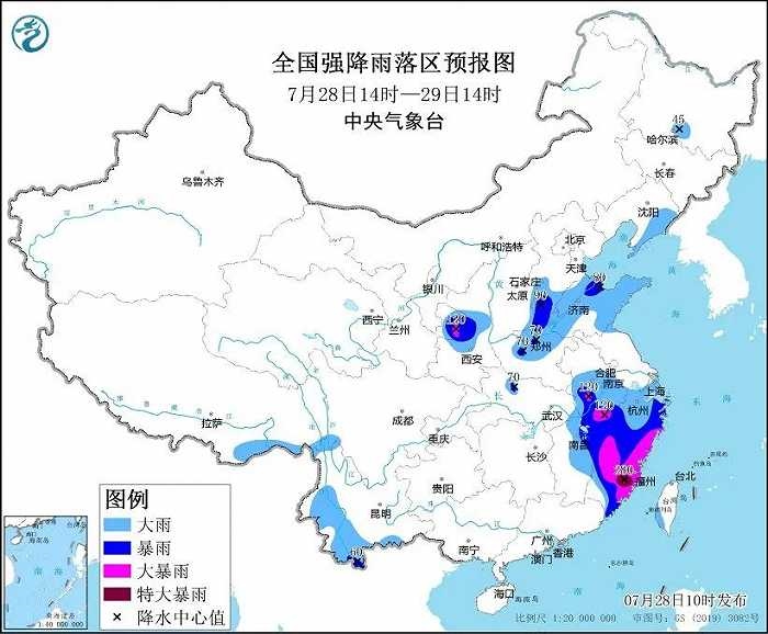 中央氣象臺(tái)7月28日06時(shí)繼續(xù)發(fā)布臺(tái)風(fēng)紅色預(yù)警,10時(shí)繼續(xù)發(fā)布暴雨橙色預(yù)警。