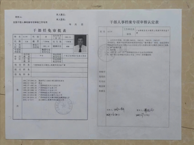 劉萬軍:舉報(bào)過,但柳城縣紀(jì)檢部門之前一直沒有受理,說不屬于他們管。后來,我把這件事反映給媒體,當(dāng)時媒體記者將我的材料向柳州紀(jì)檢部門反映以后,今年7月12號,我又交了舉報(bào)材料,他們才同意受理,但是沒有給我出具回執(zhí)。(劉萬軍提供的與柳城縣紀(jì)委信訪室通話錄音內(nèi)容顯示,紀(jì)委已受理其舉報(bào)的“個人檔案丟失”一事。)