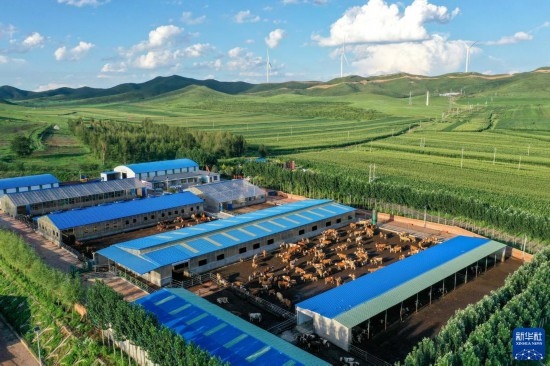 8月3日拍攝的扎魯特旗百順養(yǎng)殖專業(yè)合作社(無人機(jī)照片)。