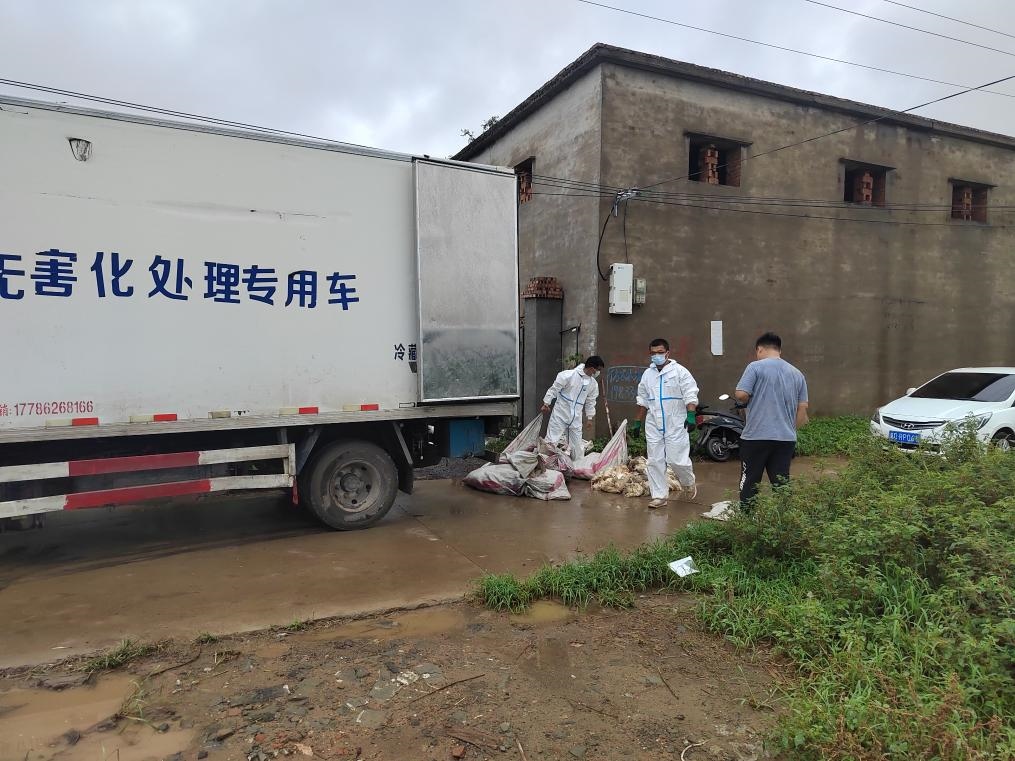 “家禽死亡后體內(nèi)帶有大量微生物,如不及時進(jìn)行無害化處理,任其腐爛發(fā)臭,病菌會四處擴(kuò)散,不僅污染環(huán)境,還容易引發(fā)疫病?!备呷戍i說:“我們組織專業(yè)人員和車輛對死亡家禽集中無害化處理,指導(dǎo)養(yǎng)殖場開展消毒消殺,防止動物疫情的發(fā)生。”