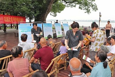 2023年6月1日,在江山市虎山街道木車村,江山市人民法院環(huán)境資源審判庭庭長(zhǎng)仲舒以身邊案例為切入點(diǎn),向村民們講解非法捕魚、濫伐林木等破壞生態(tài)環(huán)境行為的危害后果和應(yīng)承擔(dān)的法律責(zé)任,呼吁大家保護(hù)生態(tài)環(huán)境,共建綠色家園。