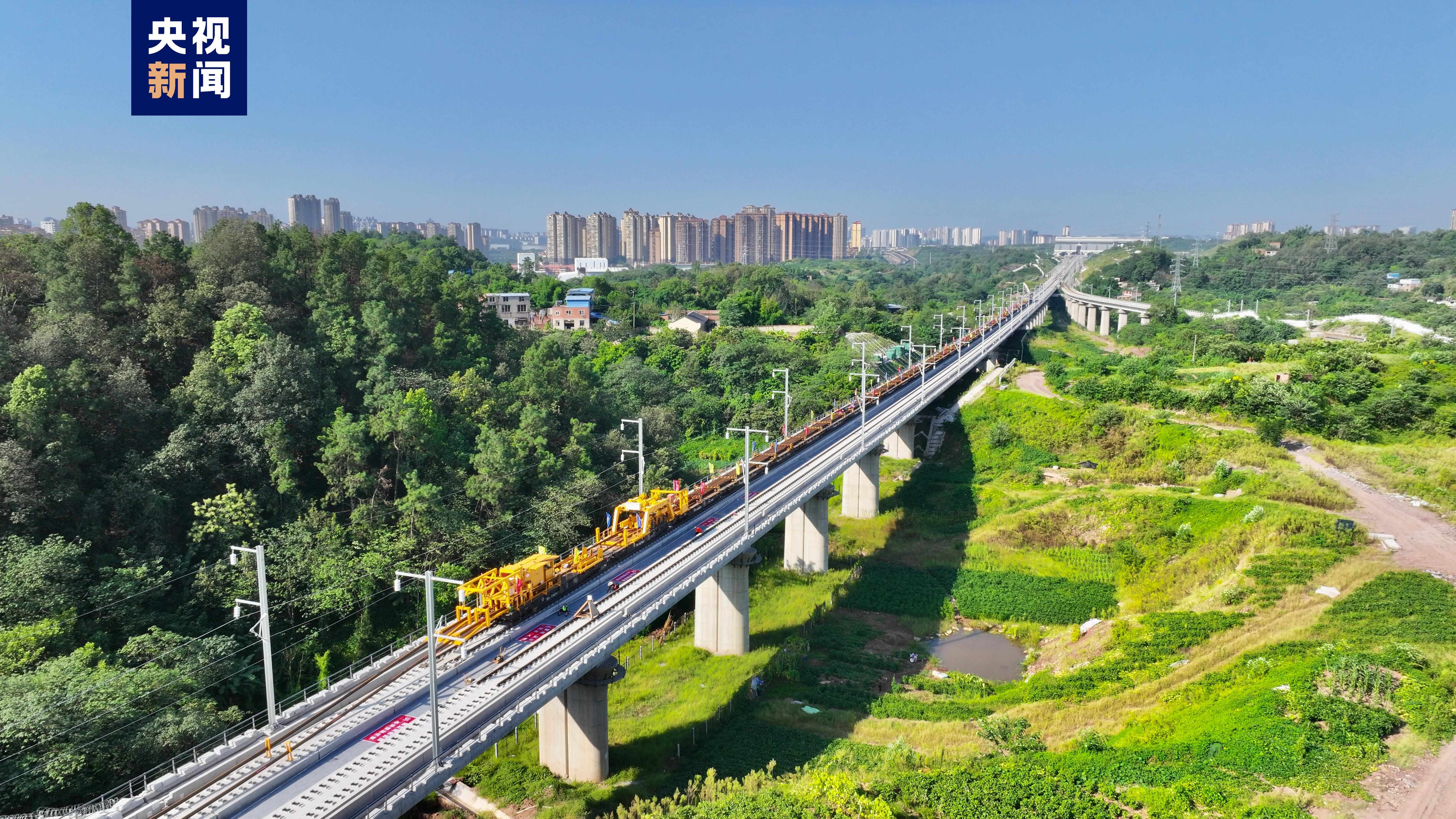 渝昆高鐵是全國鐵路“八縱八橫”主通道之一京昆通道的重要組成部分,渝昆高鐵川渝段位于我國重慶市和四川省境內,正線全長約292公里,設計時速350公里,全線已進入鋪軌、線上工程及站房建設沖刺階段,此次鋪軌(含站線)總里程共約550公里,其中正線約528公里,站線約20公里,95組道岔等施工任務。