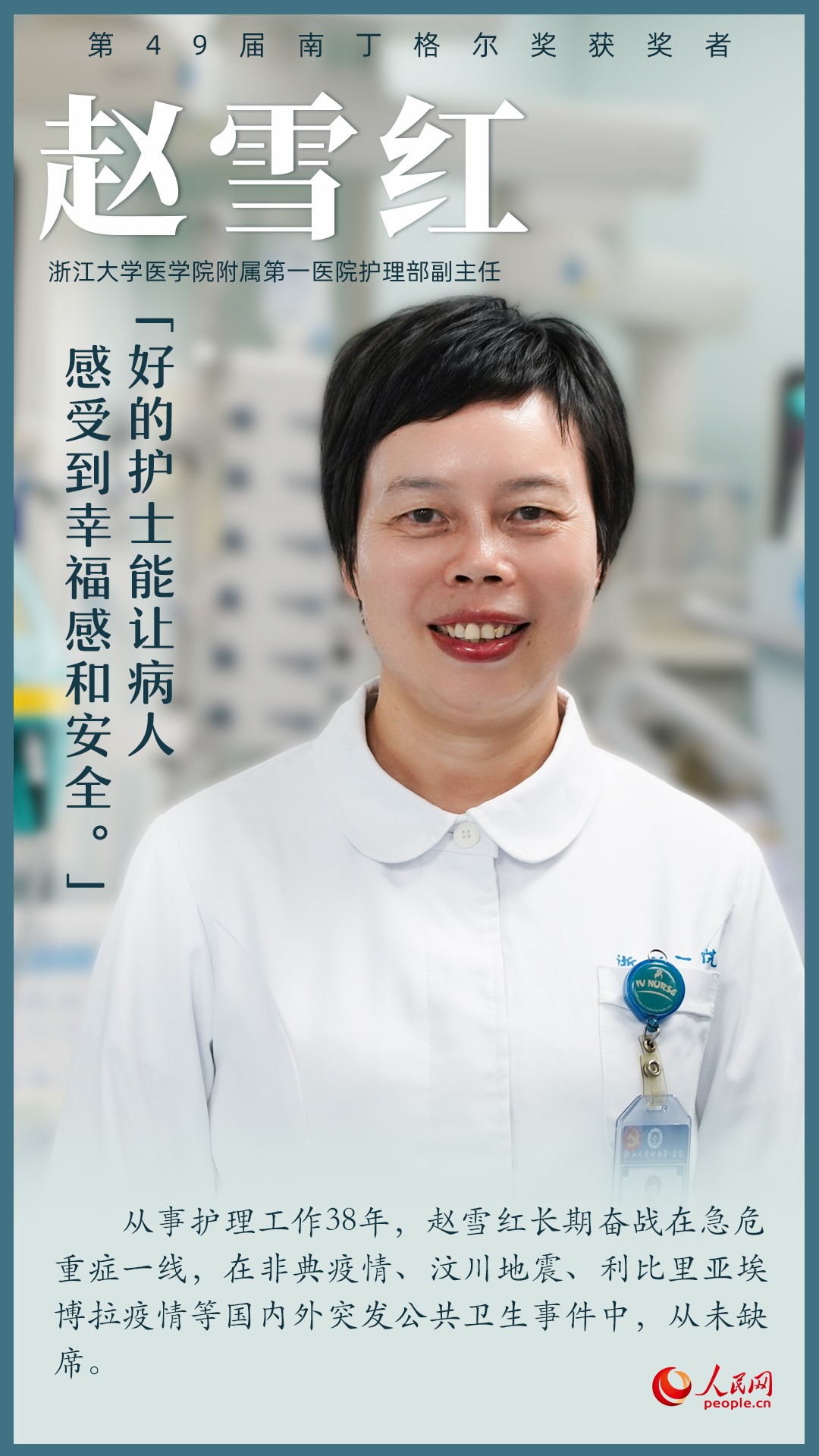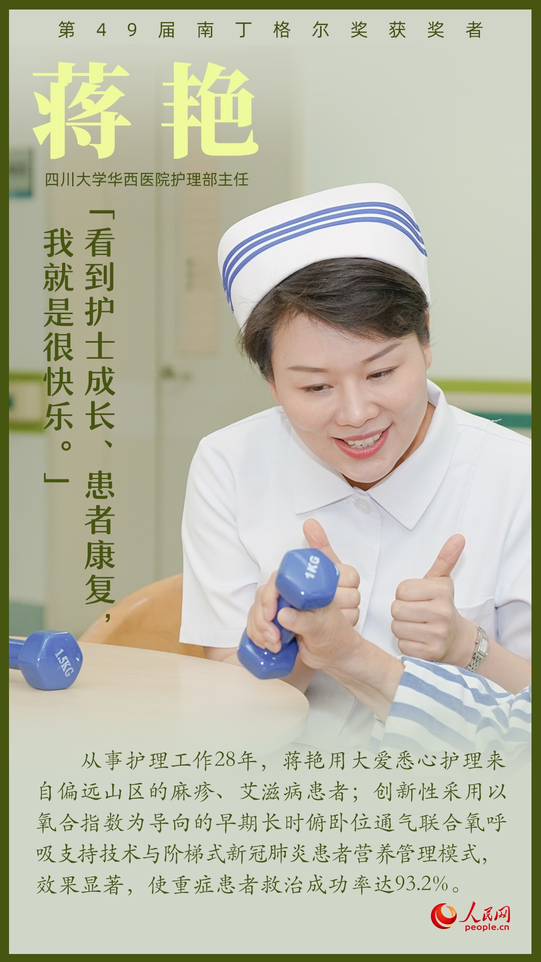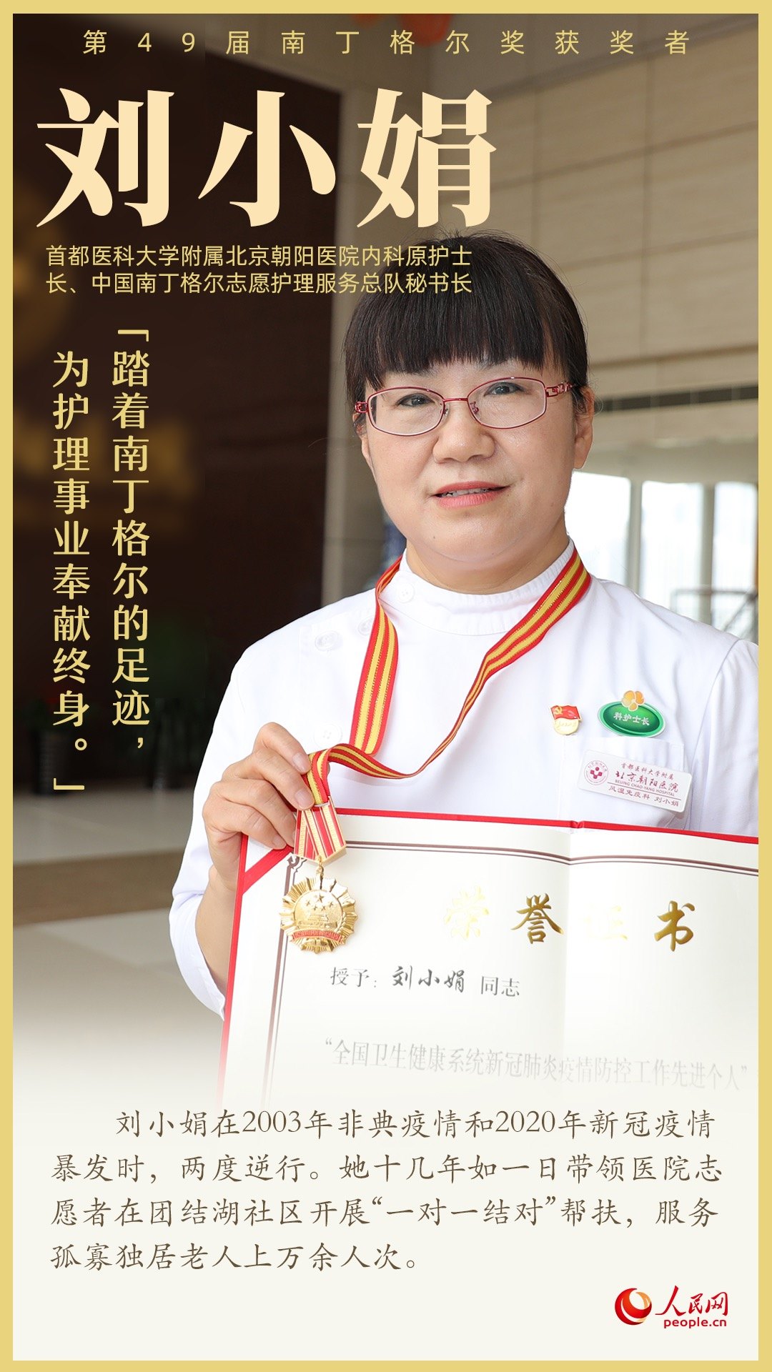 第49屆南丁格爾獎(jiǎng)?lì)C獎(jiǎng)大會9月5日上午在北京人民大會堂舉行,7名我國護(hù)理工作者獲得南丁格爾獎(jiǎng)?wù)?。她們辛勤工作在臨床第一線,全心全意為患者服務(wù),生動(dòng)詮釋了“人道、博愛、奉獻(xiàn)”的紅十字精神;她們用擔(dān)當(dāng)奏響生命之歌,用奉獻(xiàn)書寫白衣使命,在推進(jìn)健康中國建設(shè)的征程上步履不停。
