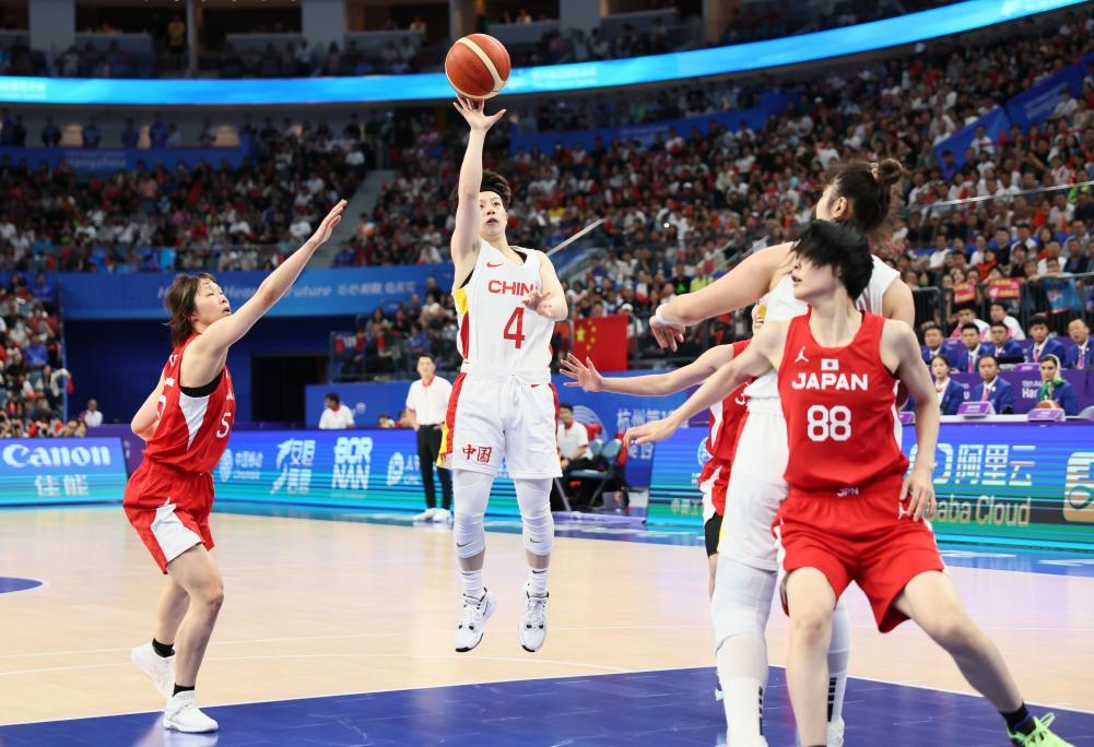 終場(chǎng)前25秒,李夢(mèng)借隊(duì)友擋拆切入籃下,王思雨送出妙傳,李夢(mèng)上籃得手,中國(guó)隊(duì)72:69領(lǐng)先。終場(chǎng)前17秒,日本球員林笑希快速反擊,投中當(dāng)晚個(gè)人第五個(gè)三分球,日本隊(duì)將比分追平。暫停調(diào)整后,中國(guó)隊(duì)進(jìn)入最后一攻,王思雨在三分線外啟動(dòng),甩開防守球員上籃得手,在僅剩9秒時(shí)幫助中國(guó)隊(duì)取得兩分優(yōu)勢(shì)。最后幾秒鐘,日本隊(duì)進(jìn)攻無果,中國(guó)隊(duì)拼下勝利。