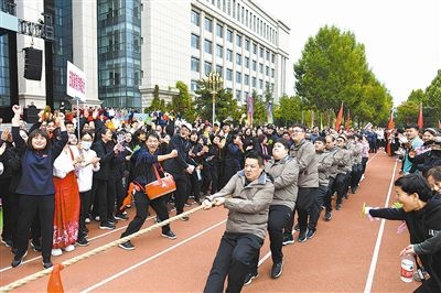 拔河是最后一個項目。賽場兩側(cè)人頭攢動、摩肩接踵,大家無不關(guān)注著這場團結(jié)與力量的比試。掌聲、加油聲、歡呼聲響徹云霄,在一場場激烈對抗中,全場氣氛一次次達到高潮。