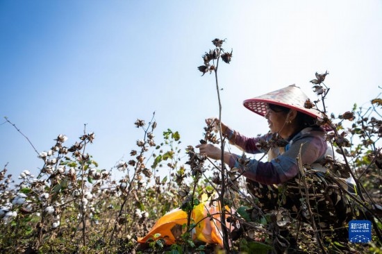 金秋十月,湖南省益陽市南縣種植的4萬余畝棉花相繼進入采收季,當?shù)孛揶r(nóng)趁著晴好天氣采摘棉花,田間地頭一片忙碌的景象。
