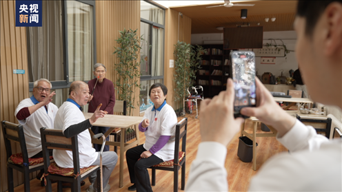 每天午餐后,他會(huì)在這里擺好桌子和道具,招呼爺爺奶奶們拍視頻。