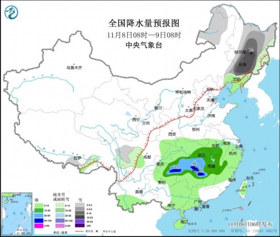 中新網(wǎng)11月8日電 據(jù)中央氣象臺網(wǎng)站消息,預(yù)計8日至9日,黑龍江中南部、吉林中西部、遼寧北部等地有暴雪和低溫冰凍災(zāi)害風險,關(guān)注對交通運輸、建筑設(shè)施安全、農(nóng)牧業(yè)、電力通信等的影響;湖南、江西、浙江、福建等地降雨較強,注意防范次生災(zāi)害。