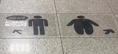·韓國地鐵扶梯標(biāo)識歧視胖人?站臺路面上的人形貼紙惹大量爭議。