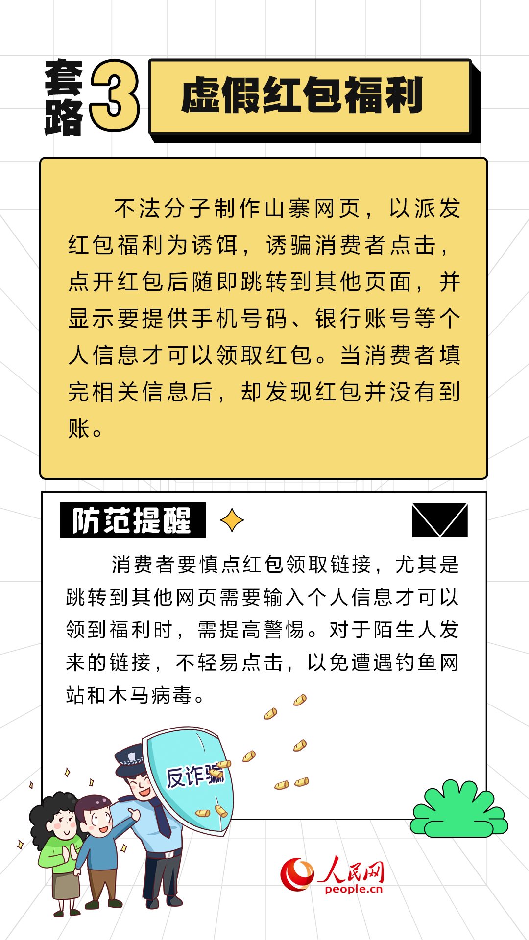 人民網(wǎng)北京11月10日電 (周靜圓)近期,“雙11”促銷活動(dòng)如火如荼地進(jìn)行中。不法分子也伺機(jī)而動(dòng),設(shè)置各式各樣陷阱。人民網(wǎng)“求真”欄目整理了六種常見的套路,提醒大家提高警惕,守好“錢袋子”。