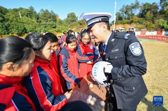 當(dāng)日,長(zhǎng)沙市公安局望城分局交警大隊(duì)的民警走進(jìn)農(nóng)村地區(qū)學(xué)校,通過(guò)交警手勢(shì)演示、鐵騎技能展示、交通標(biāo)識(shí)競(jìng)答、頭盔碰撞模擬體驗(yàn)、汽車(chē)盲區(qū)體驗(yàn)等多種形式,開(kāi)展道路交通安全宣傳活動(dòng),幫助學(xué)生們提高交通安全意識(shí)。