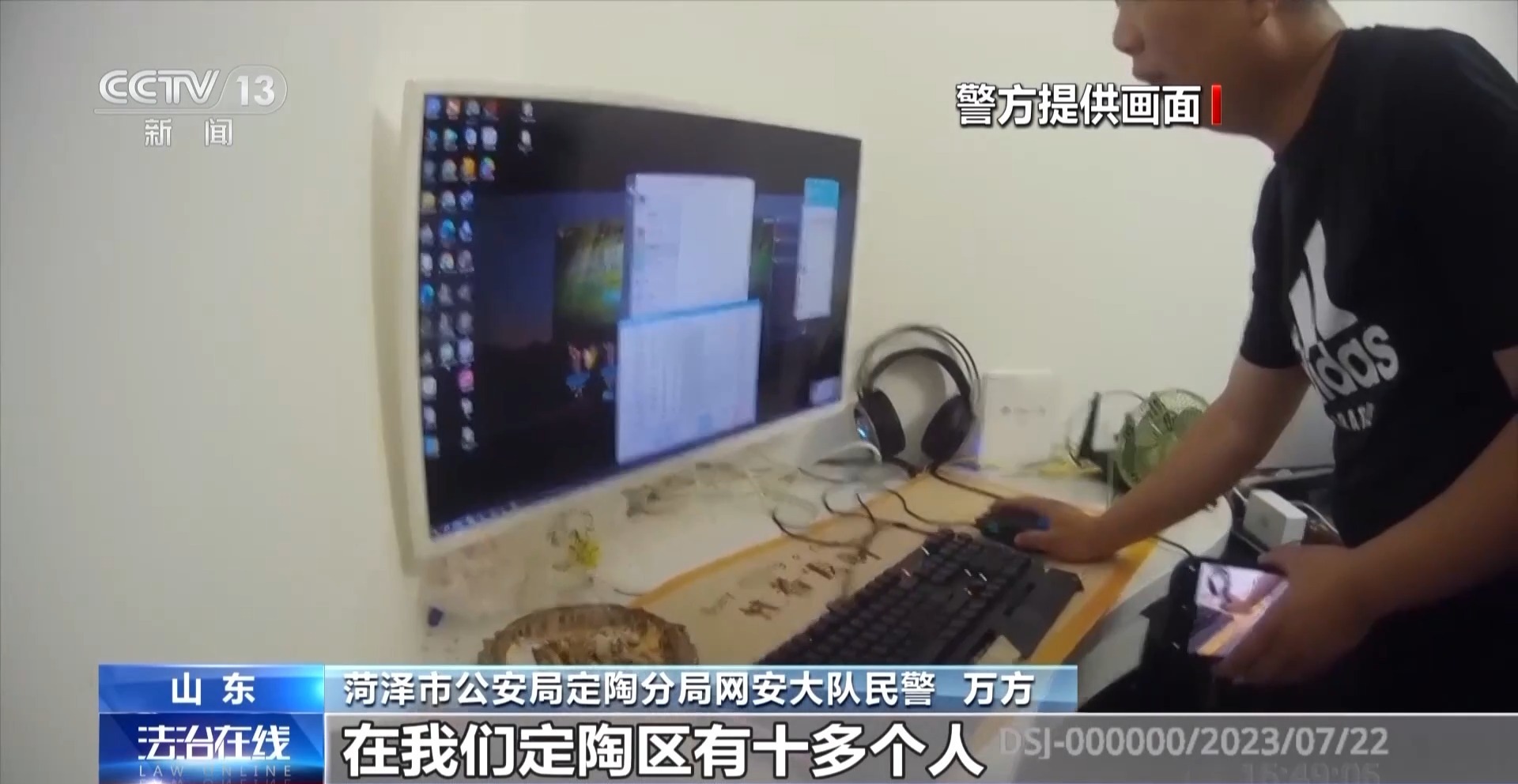 菏澤市公安局定陶分局網(wǎng)安大隊民警 萬方:打開門之后,當時非常吃驚,很多部手機同時在批量開著,還有很多充電器,批量充電的設備,他們在那里架設了一個工作室,放了三臺電腦。