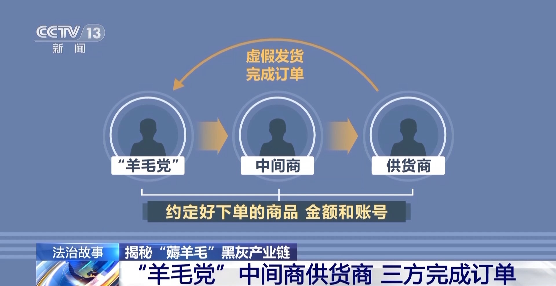 經(jīng)過梳理警方發(fā)現(xiàn),這些所謂的“羊毛黨”拿到賬號后,通過中間商與電商平臺的供貨商取得聯(lián)系,三方約定好下單的商品、金額和賬號,供貨商通過虛假發(fā)貨的形式完成訂單。