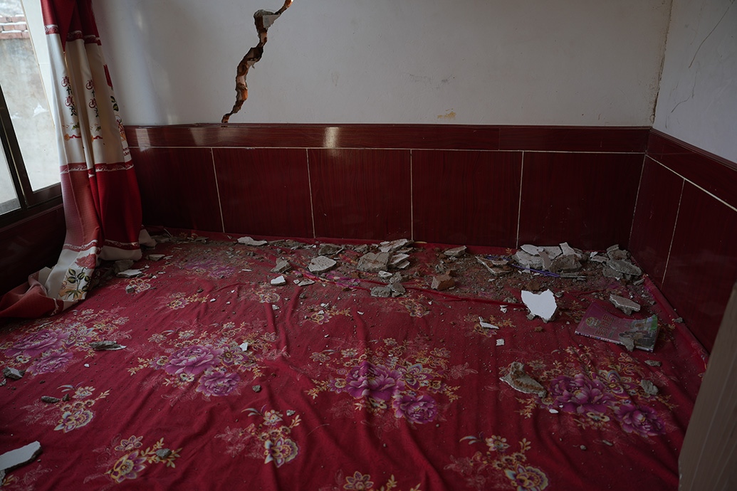 馬國(guó)忠鄰居家臥室天花板被震塌。