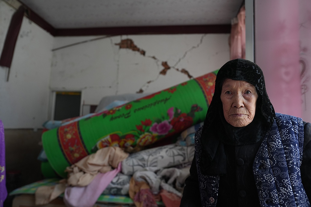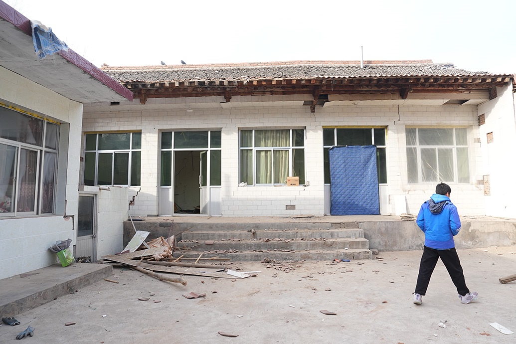 12月23日當(dāng)天,馬國(guó)忠和叔叔伯伯兩家都在家門前搭起剛領(lǐng)的帳篷。叔叔馬進(jìn)明家受損嚴(yán)重,兩堵磚墻的銜接處完全開裂,像條拉鏈被猛地拽下;天花板掉了大半,木頭架構(gòu)的屋頂赫然露在豁口里。所幸,他和家人平時(shí)在縣城租房住。