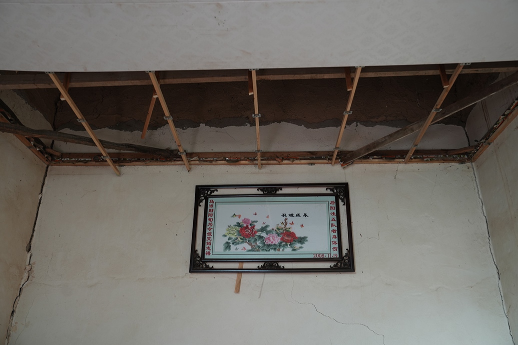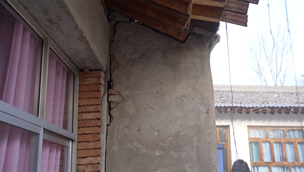 馬國(guó)忠的叔叔看著家里開裂的墻。