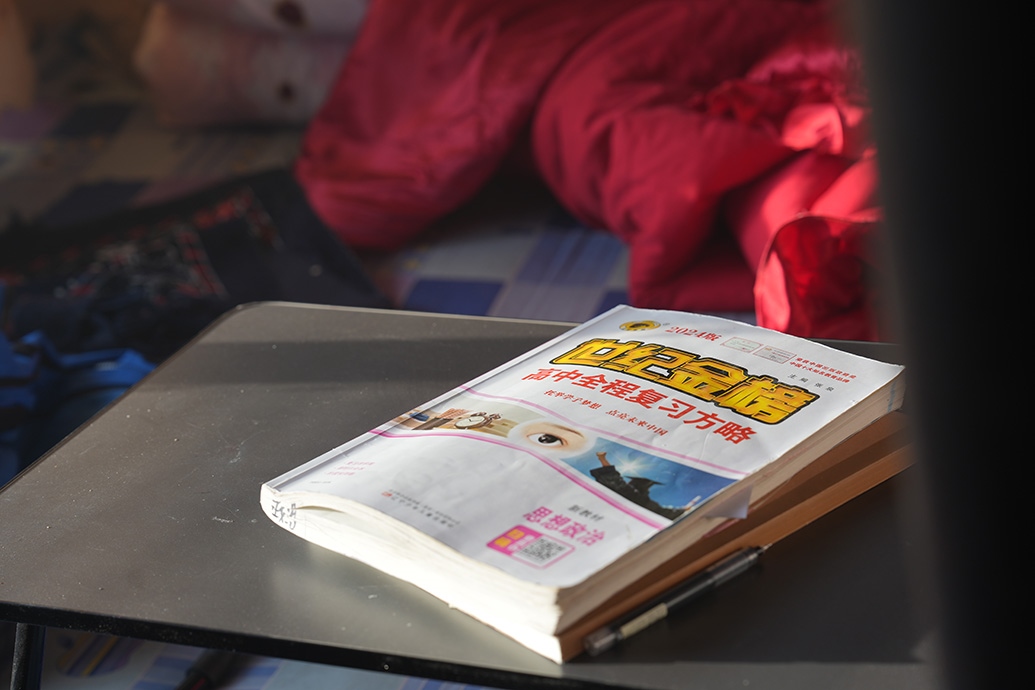 這天吃過午飯,馬國(guó)忠繼續(xù)上網(wǎng)課。7點(diǎn)早自習(xí),再上7節(jié)課,晚自習(xí)倒是比原先提前了一小時(shí),9點(diǎn)結(jié)束。過去在學(xué)校,他的弦總繃著,“一周‘嗖’的一下就過去了,教室里的倒計(jì)時(shí)牌是一天天翻翻翻?!备呷龑W(xué)習(xí)壓力大,他有時(shí)后半夜醒來,“根本睡不著”。
