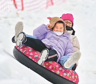 游客在山東省青州市駝山滑雪場(chǎng)體驗(yàn)雪圈項(xiàng)目。王繼林?jǐn)z(人民視覺)