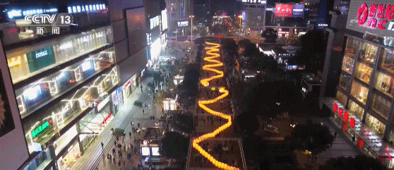 由303個(gè)宮燈拼接而成的兩條“巨龍”