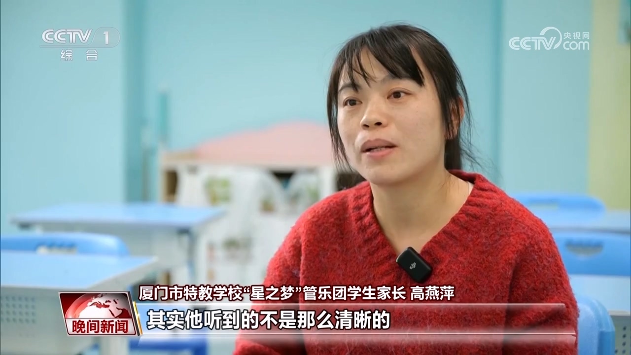 廈門市特教學(xué)校“星之夢”管樂團(tuán)學(xué)生家長 高燕萍:其實(shí)他聽到的不是那么清晰的,但是他會覺得這個(gè)聲音很美,他用手語告訴我,他覺得很美。