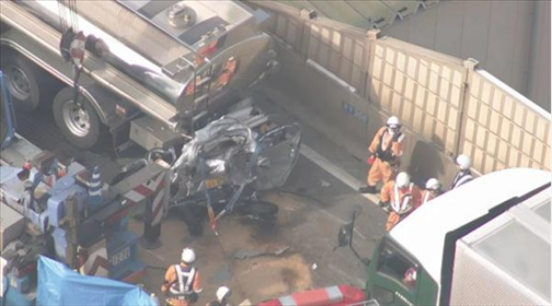 ·日本高速發(fā)生連撞事故,一轎車被擠壓至30厘米厚,車內一對70余歲夫婦當場死亡。