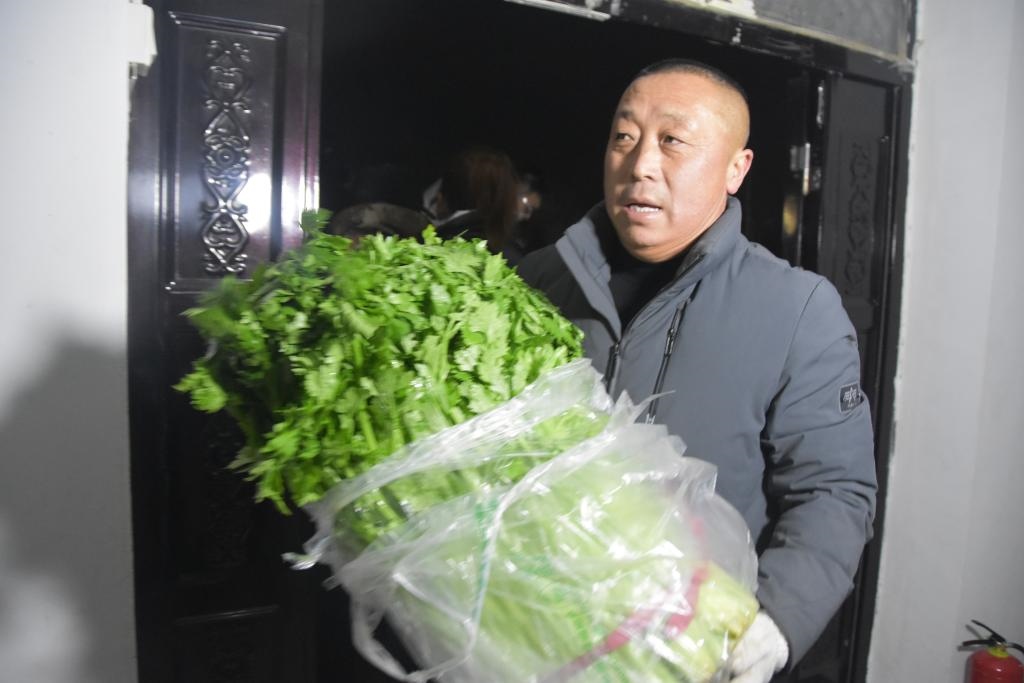 1月23日,志愿者正在搬運蔬菜。新華社記者顧煜 攝