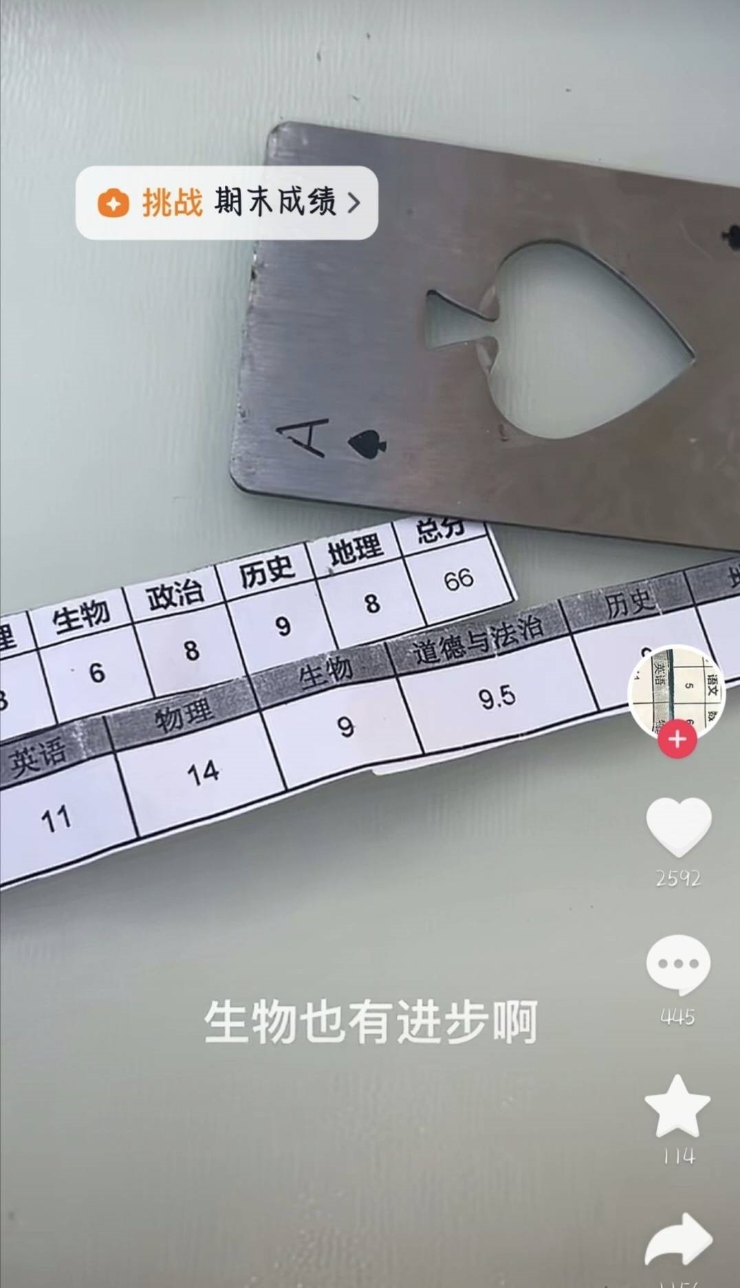 “初中妹妹8科成績總分66”一事引發(fā)網絡熱議。近日,一名網友在某平臺上傳一則視頻,稱自己去幫妹妹開家長會,拿到成績單驚呆了——妹妹8門科目總分僅有66分,成績條顯示,語文、數學、物理、生物、政治、歷史、地理等科目分數均未上10分,僅英語成績有16分,總分66分。