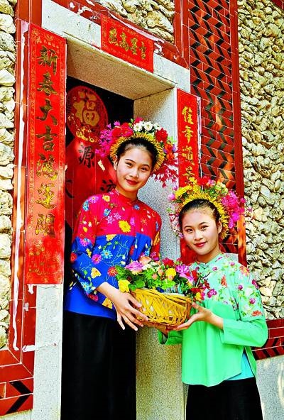 泉州市蟳埔村,蟳埔女挑起竹籃和彩燈,盛裝出行。王志超攝