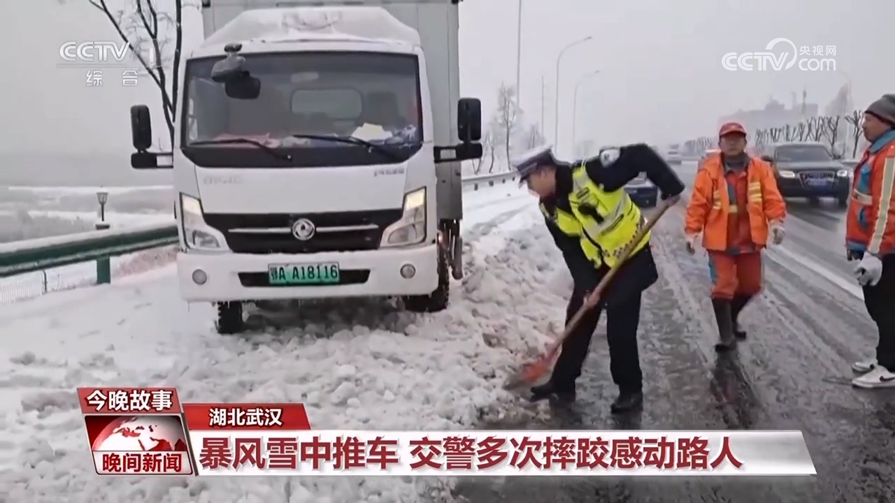暴風(fēng)雪中推車?交警多次摔跤感動路人