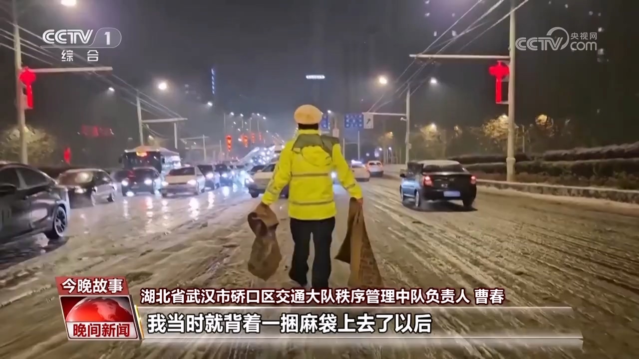 武漢市硚口區(qū)交通大隊秩序管理中隊負責(zé)人 曹春:上橋的路車輛上不去,車輪打滑,我當(dāng)時就背著一捆麻袋上去以后,在前面幾輛車車輪下墊著麻袋,從上橋處到橋面大概三百多米的距離,一輛一輛車往上推,推了以后再推下一輛。