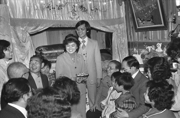 1980年春節(jié)時,有不少港澳同胞回到家鄉(xiāng)結(jié)婚。這是福建晉江縣石獅鎮(zhèn)一戶人家在鬧新房。