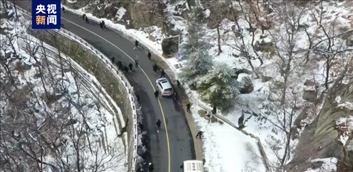 經(jīng)過泰山景區(qū)3000余名干部職工和當(dāng)?shù)?00多名公安、消防、特警以及駐山經(jīng)營(yíng)戶一整天的努力,景區(qū)積雪基本清理完畢。