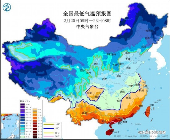 中央氣象臺(tái)2月20日06時(shí)發(fā)布冰凍黃色預(yù)警: