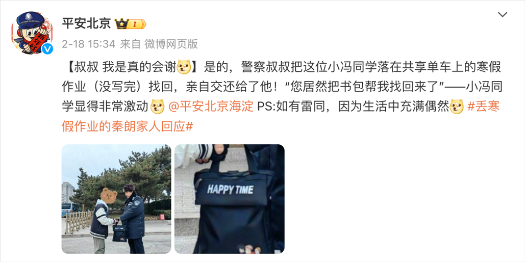 民警不僅能幫你找回寒假作業(yè)