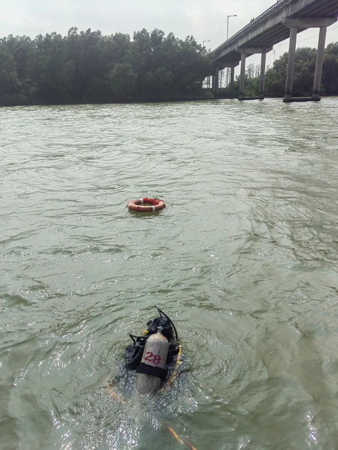 據南海救助局廣州救助基地現場救助指揮貝承璋介紹,救助現場因大橋橋埻出現明顯破損,墜落入水的水泥、鋼筋等雜物對水下搜尋作業(yè)增加一定風險,加之事發(fā)水域水流流速較大,車輛及人員落水后,水下搜尋面積大,給救助工作增加一定難度。