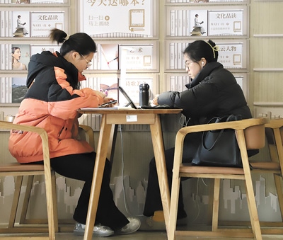 市民在西湖區(qū)三墩鎮(zhèn)民生綜合體城市書房閱讀。張聞濤攝