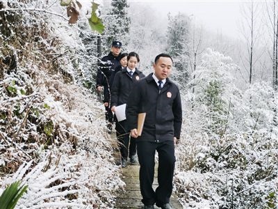 寒冷的冬日,重慶市云陽(yáng)縣人民法院江口人民法庭的干警驅(qū)車來(lái)到沙市鎮(zhèn)新橋村,將一起侵權(quán)糾紛案件的傳票送到原、被告家中。送達(dá)路上,雪越下越大,車越開(kāi)越慢,平日里半個(gè)小時(shí)的車程足足行駛了一個(gè)多小時(shí)。