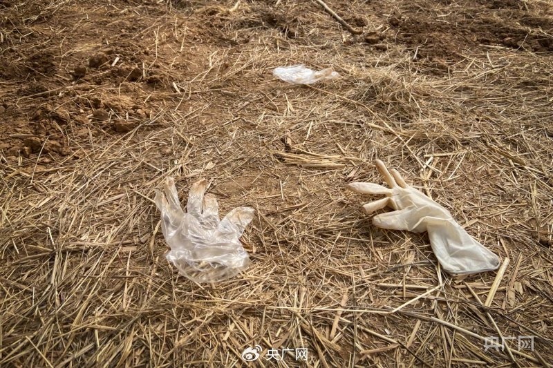 案發(fā)現(xiàn)場散落著一次性手套和橡膠手套(記者 王偉倩 攝)