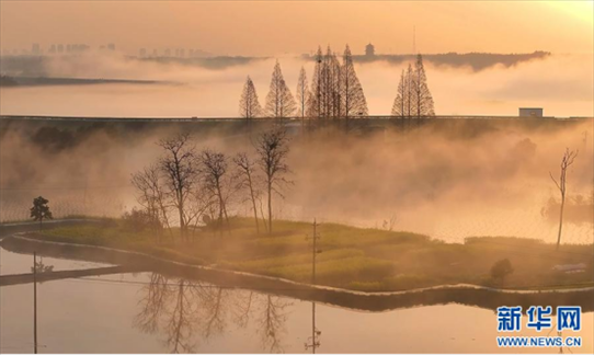 3月20日清晨,在安徽省池州市,薄霧輕籠下的秋浦河,如夢(mèng)似幻,與若隱若現(xiàn)的村莊、高鐵構(gòu)成一幅流動(dòng)的水墨畫(huà)卷。