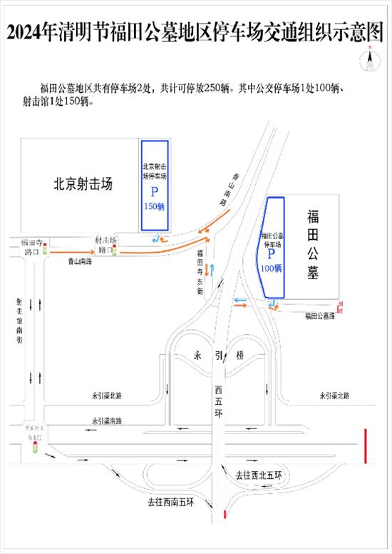 祭掃車輛可停放至公墓西側(cè)公交停車場(chǎng)、射擊場(chǎng)內(nèi)停車場(chǎng)。