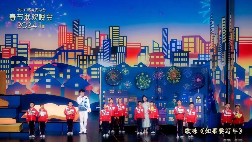 今年2月9日,李柏霖和12名學生一起登上了春晚舞臺,參與節(jié)目《如果要寫年》的表演。
