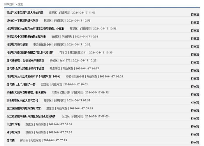中新網(wǎng)4月17日電(中新財經(jīng)記者 吳濤)近日,在“問政四川”平臺上,不少網(wǎng)友反映“更換新表后燃氣費異常上漲”,這些留言顯示來自四川成都、自貢、廣安、南充等多地,僅僅在4月16日,保守估計就有十幾條;17日上午又出現(xiàn)十幾條。大部分尚未得到回復,部分獲得官方回復稱“留言已轉(zhuǎn)交給相關(guān)機構(gòu)進行處理”。
