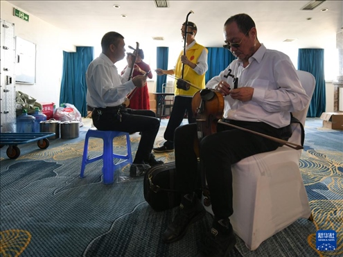4月15日,樂隊指揮王存大為大家講解演奏細(xì)節(jié)。新華社記者 胥冰潔 攝